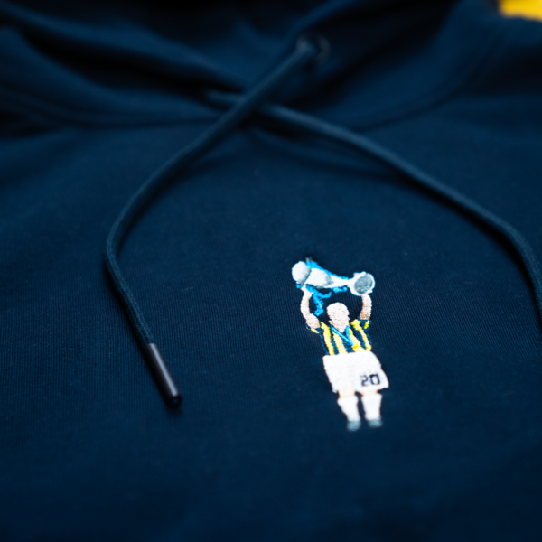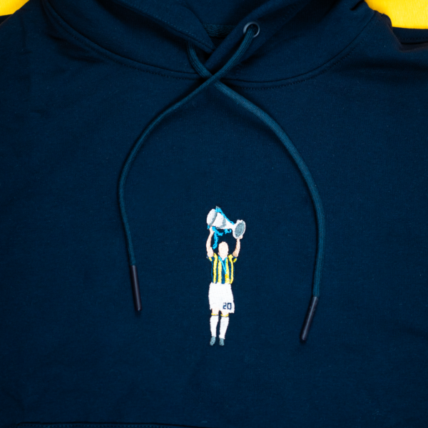 Sarı lacivertlilerin her şampiyonluğu çok özel, hepsinin bambaşka hikayesi, bambaşka kırılma noktaları var. Bu şampiyonluk kulüp tarihinin 100. yılında geldi. Cumhuriyetin kuruluşundan bu yana 26. şampiyonluğunu kazanan sarı lacivertlilerin şampiyonluk kupasını o zamanlar 20 numara giyen Brezilyalı yıldızı kaldırdı ve sonradan kale arkasında koreografisi de gelecek Comandante’liğini ilan etti. 100. yıl şampiyonluk kupasıyla Comandante’yi sizin için ekru ve lacivert renkli, oversize, şardonsuz, üç iplik kumaş üzerine işledik. Ürün kanguru cepli, üç parça kapüşonludur. Geniş kesimi sayesinde rahat kullanım alanı ve salaş bir görünüm sağlar. Ürün %80 pamuk, %20 polyester içeren üç iplik bir kumaştan üretildi. Üründe kullanılan materyaller, insan sağlığı açısından zararlı madde içermez.